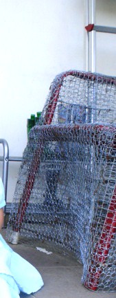 Then cover the whole chair with at least four or five layers of chicken wire. Cut the chicken wire into manageable shapes rather than wrapping it over the chair whole - you need to get the layers to follow the shape of the chair as closely as possible. Attach the wire to the chair, to the rebar and to itself, so that when you're finished it again feels like one unit.